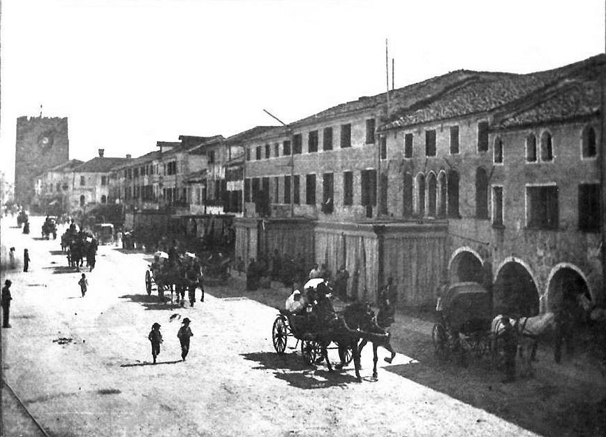 Matrimonio in carrozza in Piazza delle Erbe, direzione Duomo. Anni ’10.