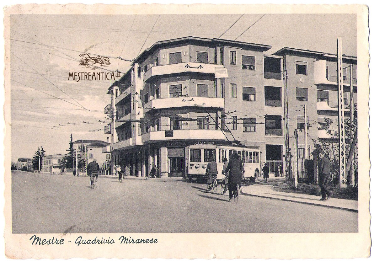 Ancora il Quadrivio Miranese (Via Piave – Via Miranese – Via Carducci – Via Circonvallazione) in un’immagine degli anni ’40.