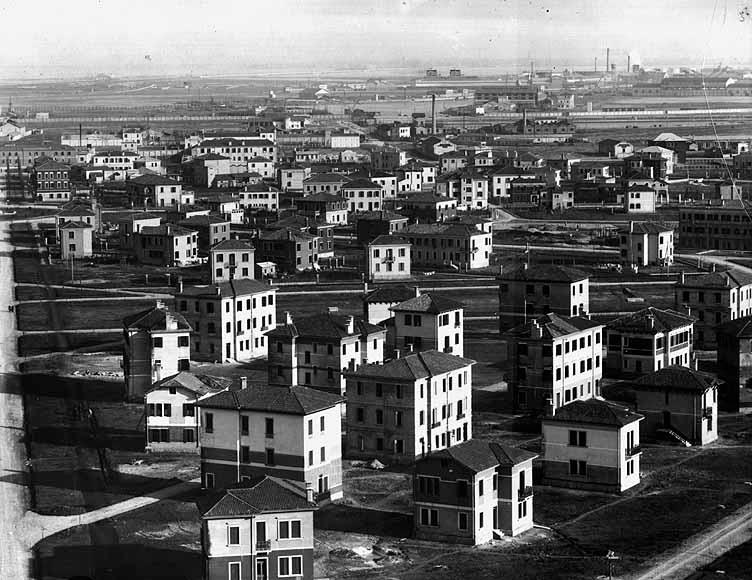 Le neonate case popolari a Marghera, con sullo sfondo la laguna.