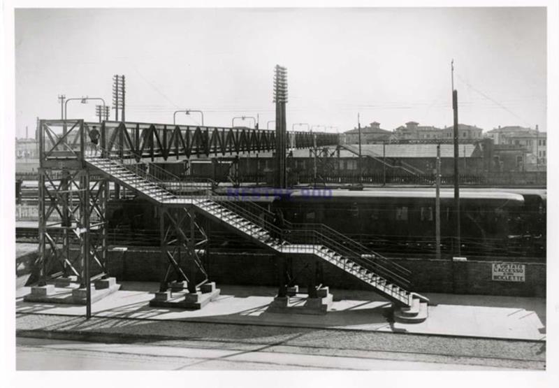La pensilina per il passaggio pedonale da Marghera a Mestre, anni ’50. La passerella rimarrà in servizio fino alla fine degli anni ’80.