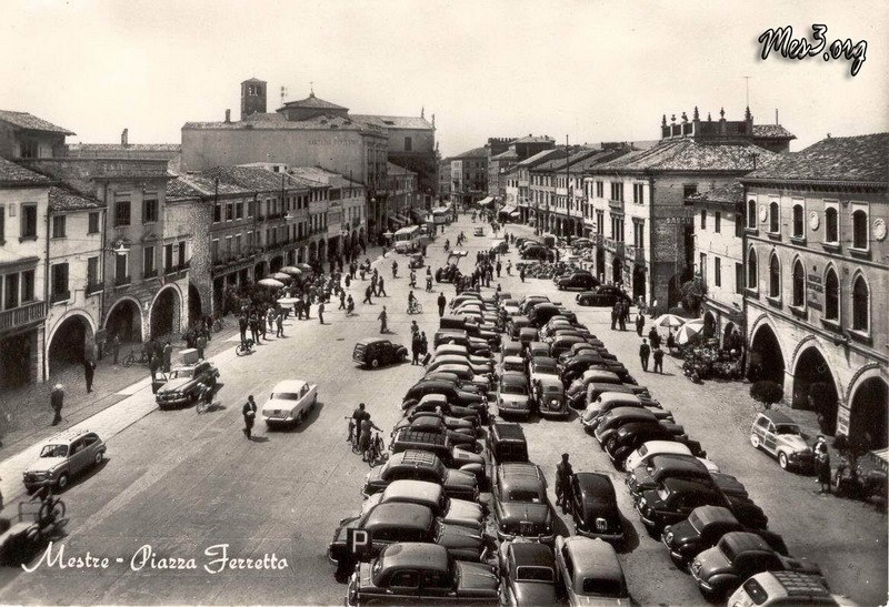 Una Piazza Ferretto ricolma di vetture parcheggiate…senza le righe. Sicuramente seconda metà anni ’40.