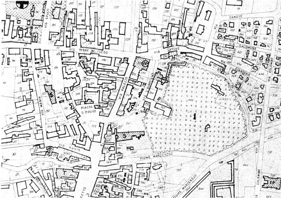 Planimetria area Parco Ponci, con esatte ubicazioni villa (sinistra) e “chalet-dependance” (destra in alto). Anni ’40.