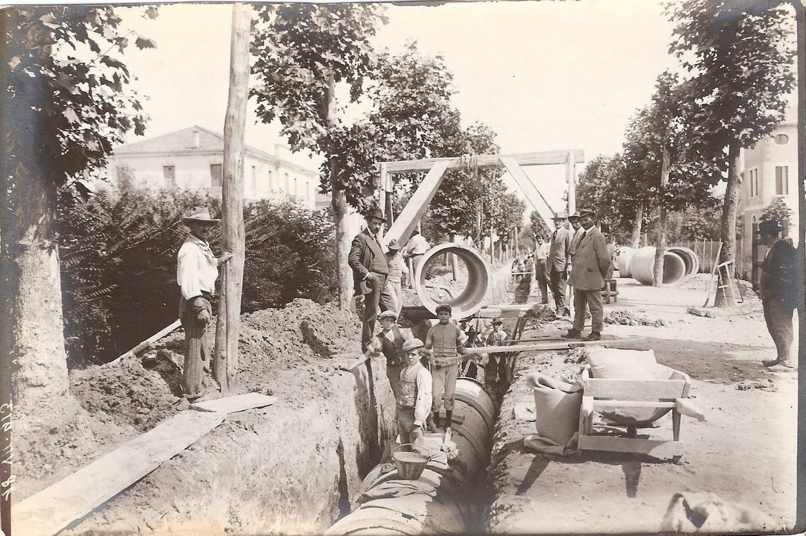 La posa dell’acquedotto in centro a Mestre. Presumibilmente via Ferro. Primi anni ’10.