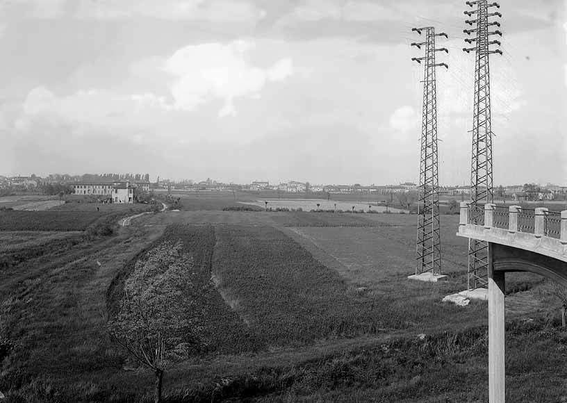 Anni ’50. Un panorama dal cavalcavia (verso Mestre?) ancora totalmente rurale, che di lì a poco verrà completamente snaturato per fare posto alle fabbriche e ai palazzoni.
