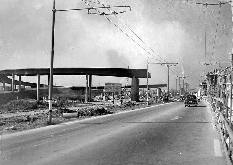 Primi anni ’50: costruzione del Cavalcavia a San Giuliano, visto dalla strada