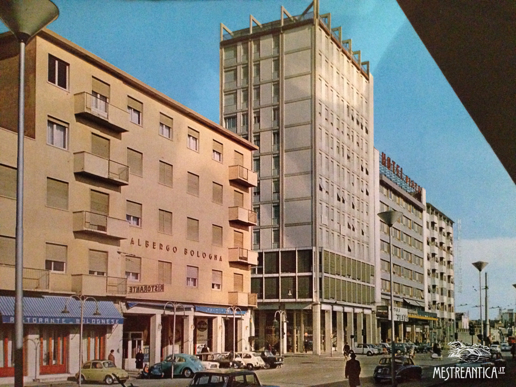 L’Hotel Bologna con il Ristorante Bolognese, fine anni ’60 oppure primi anni ’70. La foto riprende il medesimo angolo – da angolazione opposta – di questa, datata circa 40 anni prima. Le vecchie costruzioni dal sapore rurale hanno lasciato spazio al cemento e alle linee squadrate degli anni ’60.