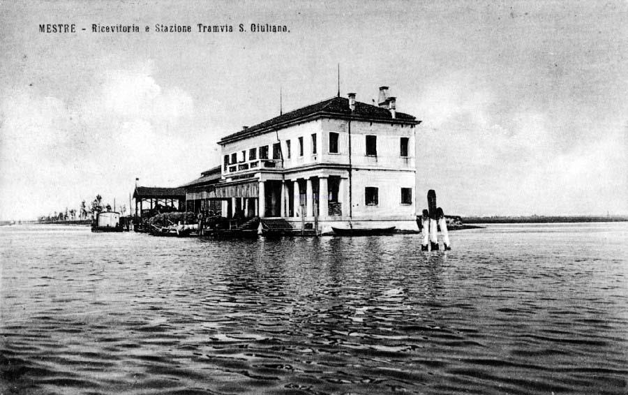 Qui non c’era ancora la Colonia che verrà costruita in avvenire . Ma di pari passo con la Colonia , nascerà un vero e proprio stabilimento balneare con tanto di camerini e di spiaggia che guardava Venezia . La spiaggi dei ” mestrini ” . Attualmente si può vedere l’edificio che fungeva da entrata …è il primo manufatto che si incontra dopo il parcheggio della porta Gialla attuale. Lo si nota subito per la facciata decorata e ” strana ” ….