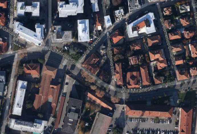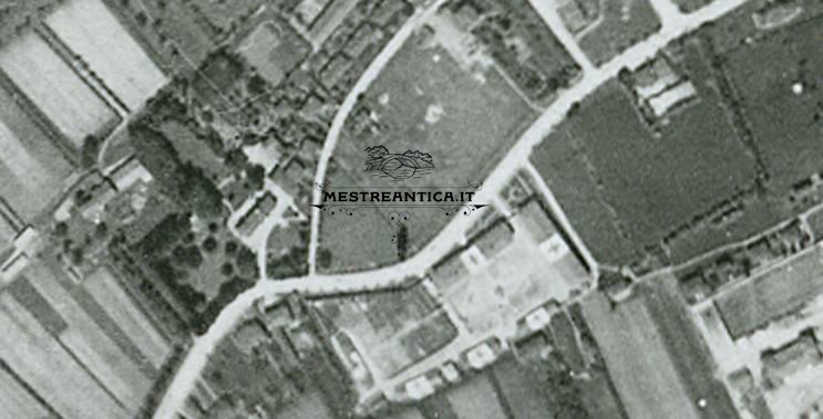 In questa esclusiva fotografia aerea tratta da fotopiani austriaci del 1918 (collezione Fulvio Busetto), si può riconoscere il villino Sofia nella sua esatta ubicazione. Siamo in Via Miranese, e quella nel lato sinistro (in basso) è la futura Caserma Piave, nata come ospedale militare durante la Prima Guerra Mondiale. In corrispondenza della curva si nota l’accesso al villino. La strada che diparte dall’arteria principale invece è Via Verdi. Ora al suo posto, manco a dirlo, palazzoni: ubicazione esatta in corrispondenza dell’attuale “Pasticceria Loredana”.