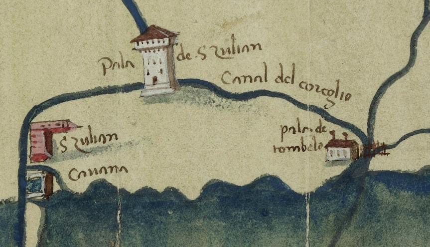 L’isola di S. Zulian era perciò in territorio veneziano: sopra di essa esisteva una Torre di avvistamento e un albergo che doveva servire ai visitatori che, in viaggio per Venezia, vi sostavano prima della traversata. L’isola si chiamava San Giuliano del Buon Albergo e vi era anche un piccolo monastero per i frati. Di questo monastero si ha documentazione sin dal 1286. Naturalmente come ogni posto di confine, c’era anche una dogana per il pagamento dei dazi e il controllo dei visitatori in transito. Passavano di là molte merci provenienti dalla terraferma ma nel XIV secolo, nel periodo più conflittuale fra i Veneziani e i Trevisani, ebbe anche un consistente valore militare. La Torre di S. Zulian fu eretta dai veneziani nel 1209 ed è quella che vediamo riprodotta dal Canaletto, erroneamente definita Torre di Marghera perché, al tempo del Canaletto, 1750 circa, era già stata distrutta.