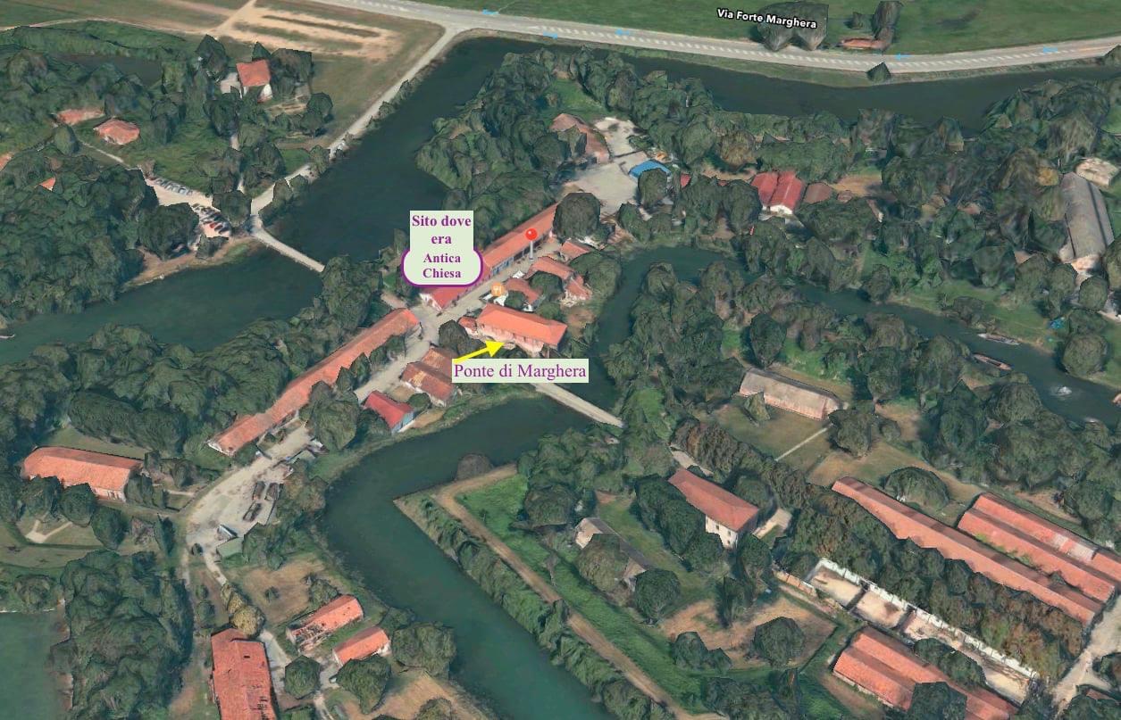 Fu decisa la trasformazione dell’antico borgo di Marghera nella nuova fortificazione che fu iniziata nel 1805 dagli Austriaci con le prime requisizioni e la realizzazione dei primi bastioni e poi proseguita dai Francesi negli anni successivi. L’antico ponte di Marghera fu riutilizzato costruendovi sopra il deposito delle polveri. La chiesa fu inizialmente recuperata come caserma, gli altri edifici come corpi di guardia ed alloggi per il comandante e degli ufficiali e come uffici e magazzini. Lo stravolgimento di quell’area fu totale. Sono stati abbattuti gli edifici ad abitazione, le osterie, le case coloniche e la chiesa. Le uniche testimonianze rimaste sono il ponte e il cippo di conterminazione lagunare n. 71, a ricordarci che in quel tempo le acque della laguna arrivavano a lambire quell’antichissimo borgo.