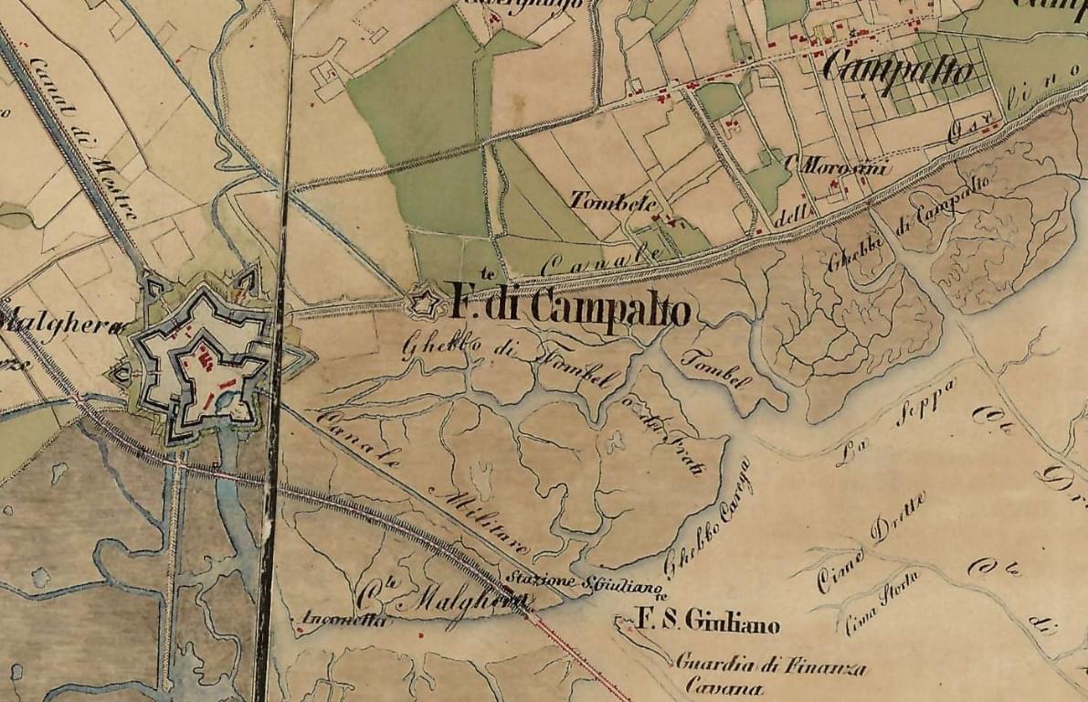 In tempi remoti il fiume Musone sfociava in prossimità di Marghera e la Cava Gradeniga, scavata nel 1361, ora chiamata Canal Salso, era il vecchio letto del Muson (Luigi Brunello, Antica idrografia della terraferma veneziana. Venezia, 1968). Al suo fianco c’era la strada che ora chiamiamo “via Forte Marghera”, con un ponte che scavalcava un vecchio ramo del Marzenego e che la faceva congiungere con la vecchia via Orlanda e quindi con Campalto e Tessera.