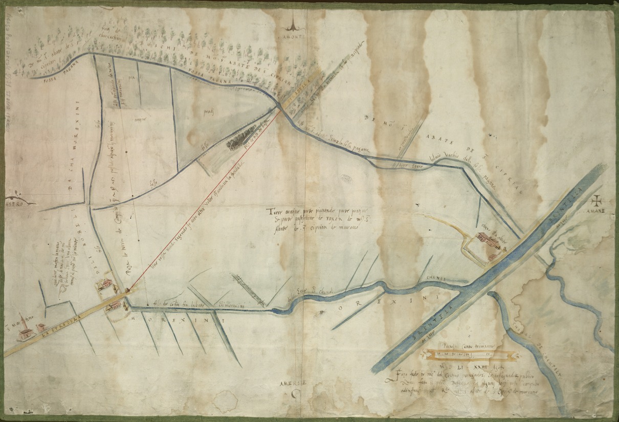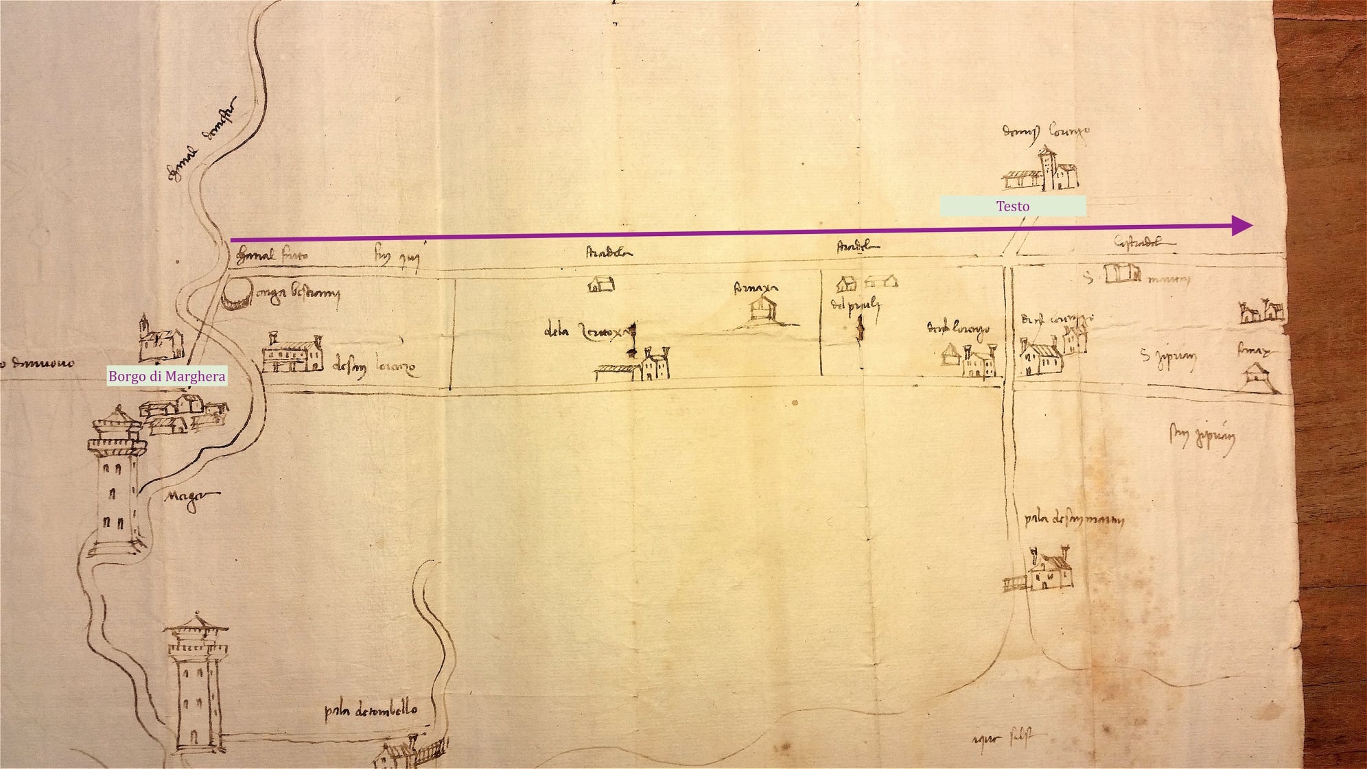 - Archivio di Stato di Venezia. Mappa del Tombello anno 1520 ca. Da Marghera a S. Martino di Strada [Campalto]. La strada era segnata e indicata come “la stradella”. vedi linea viola