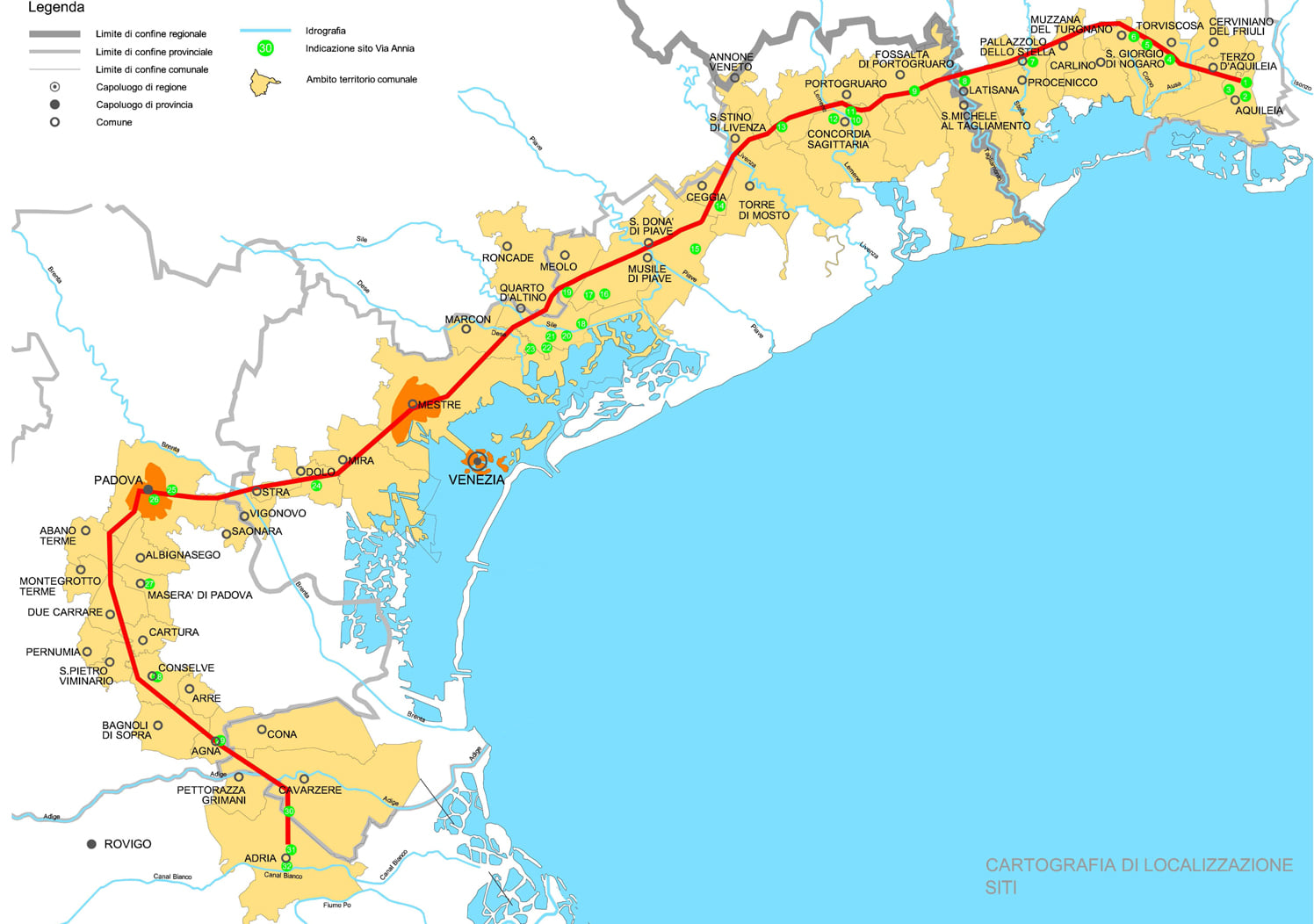 - Il tracciato della via Annia da Adria a Aquileia