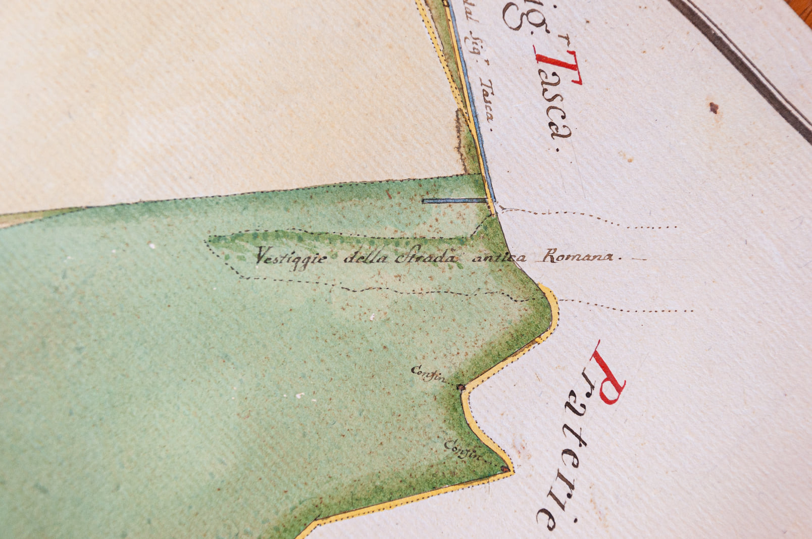 - Cartografia del 1869 con le tracce dell’antica strada Emilia Alitante o Annia