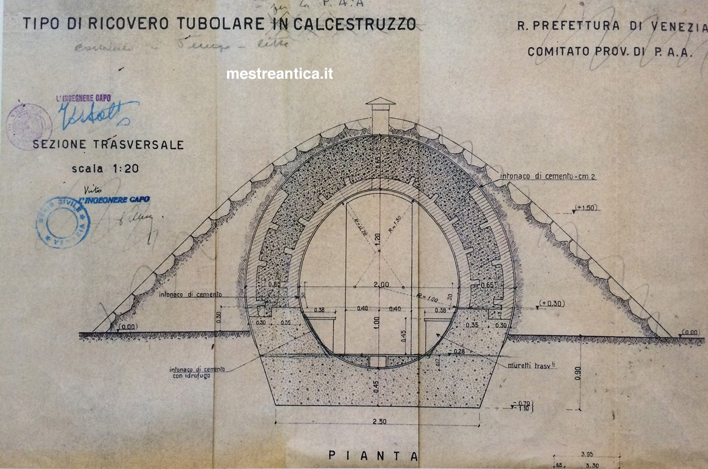 Negli ultimi 2 anni della Seconda Guerra Mondiale, a Mestre trovarono luogo diversi rifugi antiaerei, visibili qui e qui .